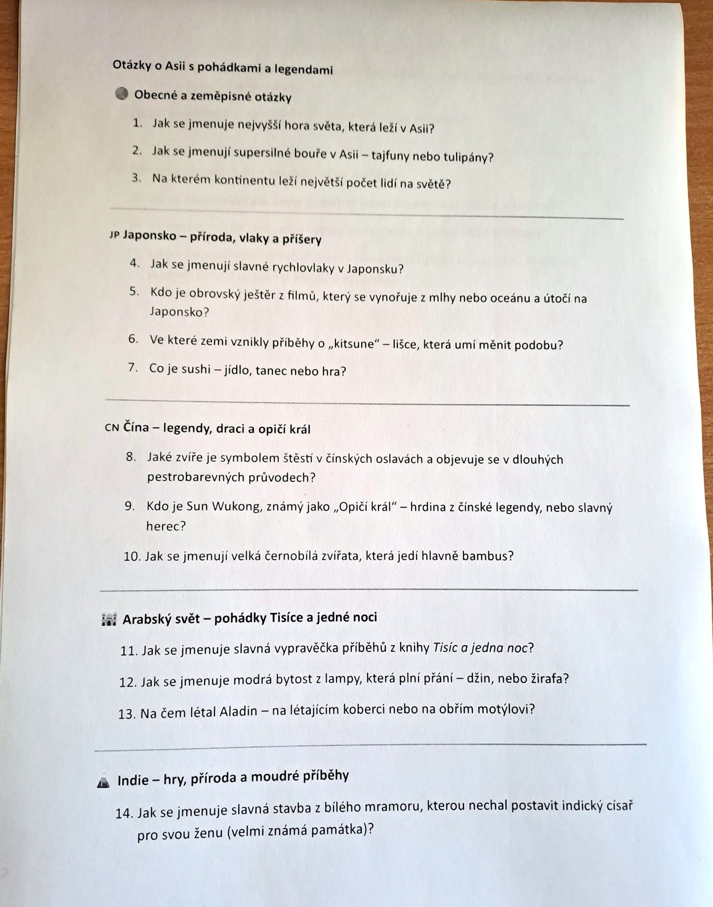 Cestování s knihou - Asie 3.A 13.3.2026